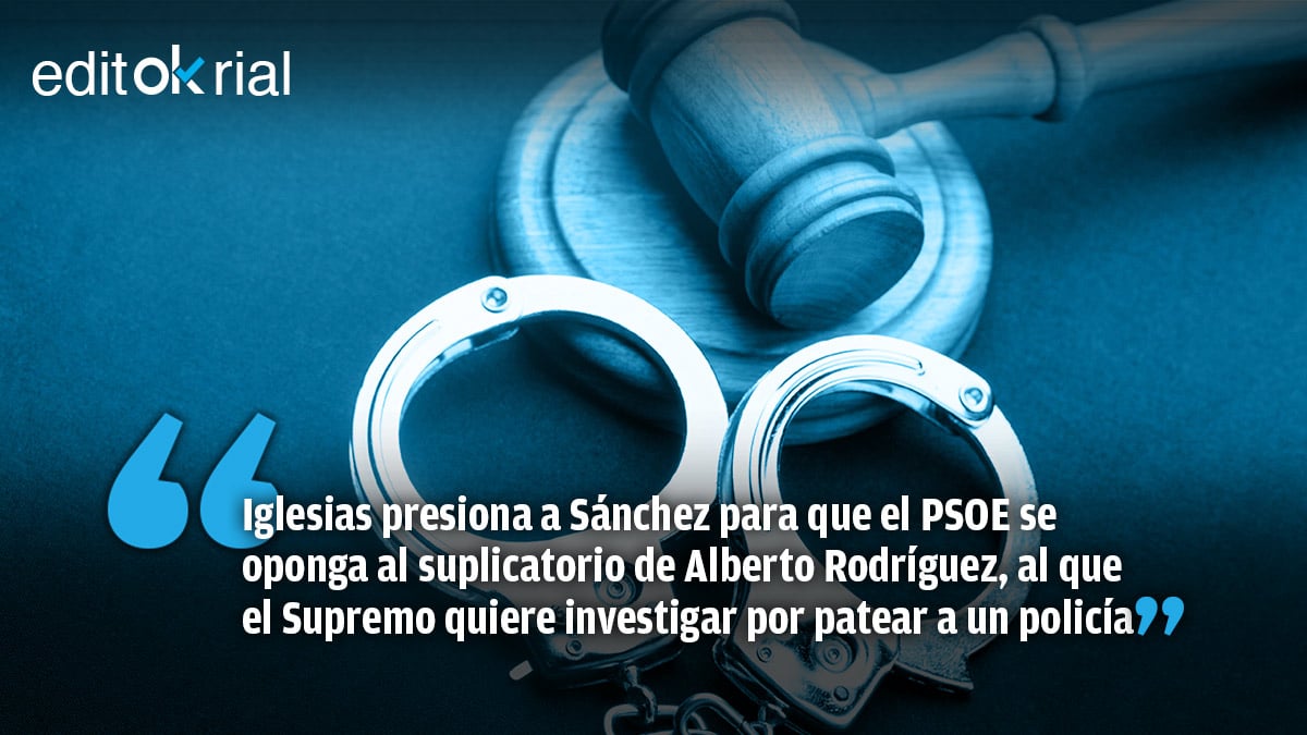 Si el PSOE se pliega al chantaje de Podemos y se opone al suplicatorio pedido por el Tribunal Supremo al Congreso de los Diputados para investigar al número tres de la formación morada, Alberto Rodríguez, por patear presuntamente a un policía, estaría encubriendo a un posible delincuente. Así de claro. Lo que pretende Pablo Iglesias -que el Congreso blinde a su diputado de la acción de la justicia- es una ignominia propia del personaje, pero si Pedro Sánchez se pliega y accede, el PSOE estaría cometiendo la mayor tropelía: otorgar un inadmisible trato de favor, rayano en lo delictivo, a un diputado. Y ya puestos: imaginemos que el Supremo decide investigar al secretario general de Podemos por el «caso Dina-Iglesias». ¿También el PSOE impediría que el Supremo siguiera adelante? Cuidado, porque si Sánchez «indulta» a Alberto Rodríguez estaríamos ante un escándalo sin precedentes que podría culminar con el «indulto» -si se diera el caso- de su vicepresidente segundo. Si todo eso ocurriera, la democracia en España sería un mero trampantojo, un mero efecto óptico, porque en el fondo el socialcomunismo habría firmado el acta de defunción del Estado de Derecho.