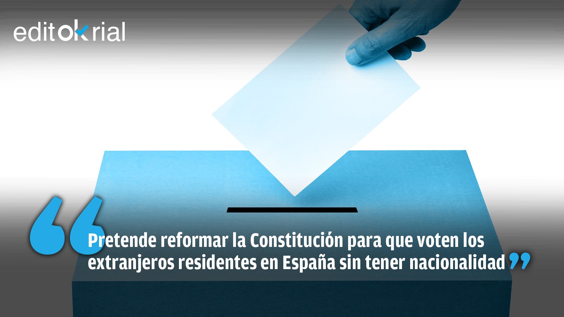 Un documento del PSOE, elaborado el 28 de junio de 2021, recoge un apartado en el que, bajo el título «En relación a la Participación política de las personas migrantes», se baraja la posibilidad de «realizar una reforma constitucional que posibilite el derecho de sufragio en las elecciones municipales de las personas extranjeras residentes en España”. Sin limitación de ningún país, ni exigencia de reciprocidad de voto en sus países para los españoles, lo que, evidentemente, supondría una ventana abierta para que cualquier persona no nacionalizada, con un mero permiso de residencia, independientemente de su país de procedencia pudiese votar en España. Cierto es que la reforma afectaría sólo a los municipales, pero en el viejo ideario socialcomunista está que se extienda al resto de procesos electorales.