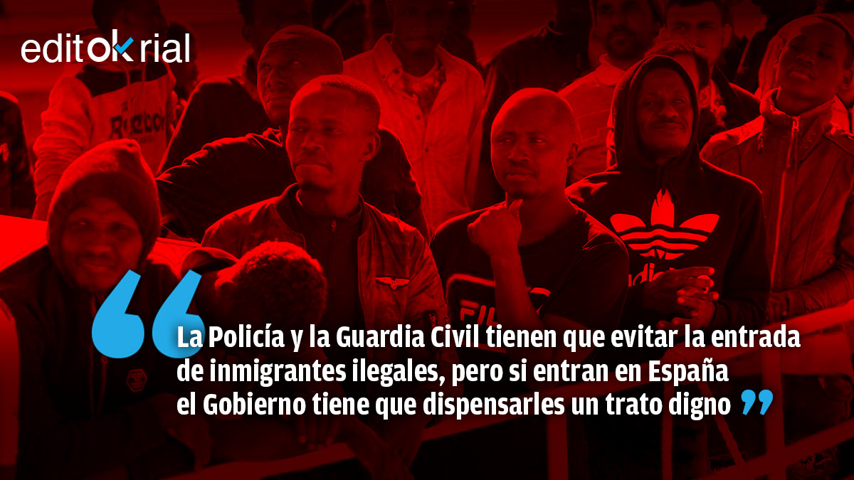 La Policía y la Guardia Civil tienen que evitar que los inmigrantes ilegales entren en España, pero una vez que entran el Gobierno está obligado a dispensarles un trato digno. Lo que no puede ser es que al Ejecutivo socialcomunista se le llene la boca de palabras como solidaridad y progresismo y, a la hora de la verdad, se comporte de manera hipócrita. El campamento de Barranco Seco no es lugar de acogida, sino un bochornoso barracón que no puede servir de residencia temporal de nadie.