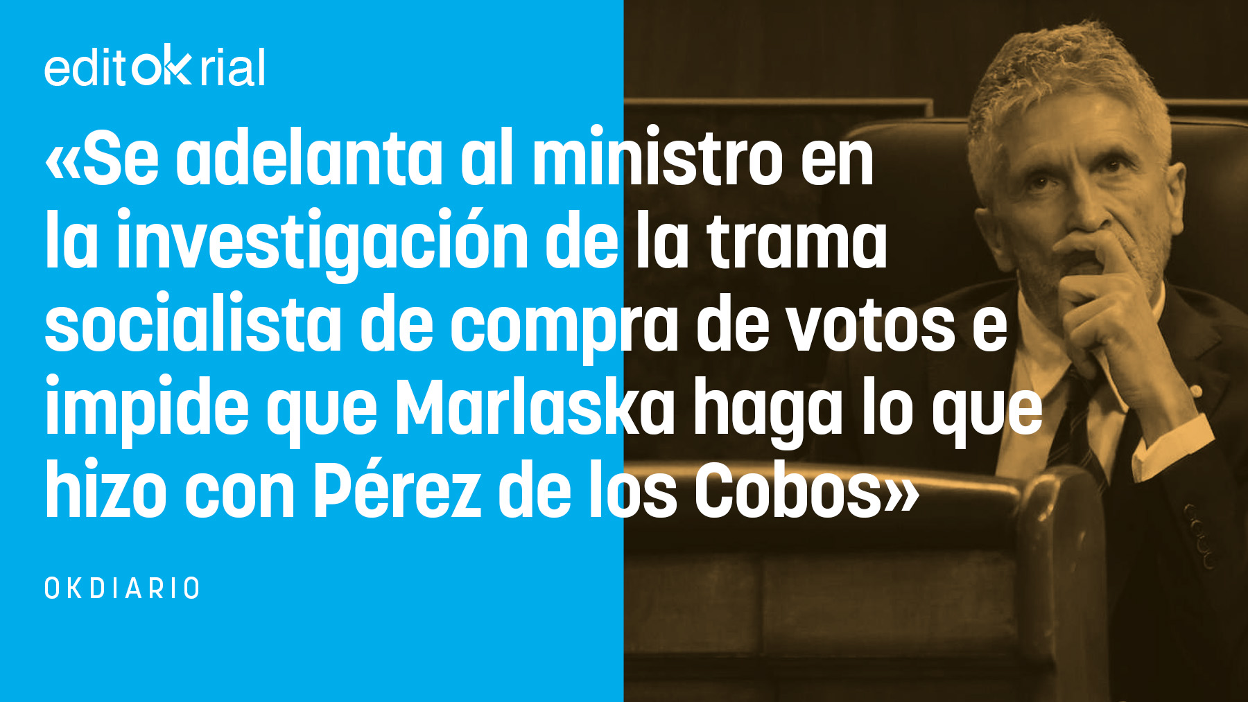Por fortuna, esta vez la Guardia Civil ya tenía atados todos los cabos y no le ha dado tiempo al ministro para que se inmiscuyera en las investigaciones y terminara por echar tierra al caso. Marlaska, esta vez, no ha podido evitar que la Guardia Civil cumpla con su obligación de poner a buen recaudo a los socialistas implicados en una trama de compra de votos que le ha estallado a Pedro Sánchez en plena campaña. Quien crea que lo ocurrido demuestra que Marlaska se ha mantenido al margen de la operación por pulcritud democrática se equivoca. Lo que ha ocurrido es que la Guardia Civil ha sido rápida acumulando pruebas y se ha adelantado al ministro de forma clamorosa.