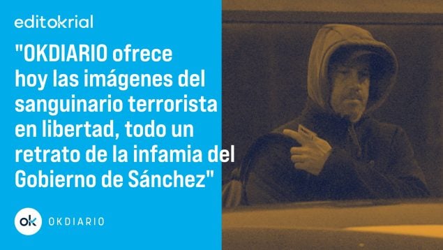Las imágenes que ofrece OKDIARIO del etarra Garikoitz Aspiazu Rubina, alias Txeroki, paseando libremente por la calle tras abrirle de par en par las puertas de la prisión de Martutene, son el puro retrato de la indignidad y de la infamia. Un sanguinario terrorista condenado a 377 años de prisión por 20 delitos de asesinato en grado de tentativa disfrutando de la libertad. Cuánta vileza y cuánta miseria moral: un asesino beneficiado por el trueque inmoral entre Bildu y el PSOE de Pedro Sánchez: votos por presos, la quintaesencia de lo abyecto. OKDIARIO ha sido testigo de los movimientos de Txeroki durante las primeras horas en su condición de beneficiario del tercer grado. Las imágenes del terrorista componen el relato gráfico de esta época en la que el sanchismo lo ha ensuciado todo. Al etarra se le ha concedido la libertad -sólo tiene que ir a dormir a prisión- sin constar arrepentimiento de sus crímenes ni de su pasado terrorista. Es más, cuando OKDIARIO le pregunta si se arrepiente de sus crímenes, Txeroki guarda un miserable silencio. Cuando el etarra, tras pasar la jornada fuera, regresa a dormir a la cárcel, acude acompañado. Le lleva un conductor y una segunda persona le espera en la puerta de Martutene. Alguien que trata de impedir que OKDIARIO le retrate.