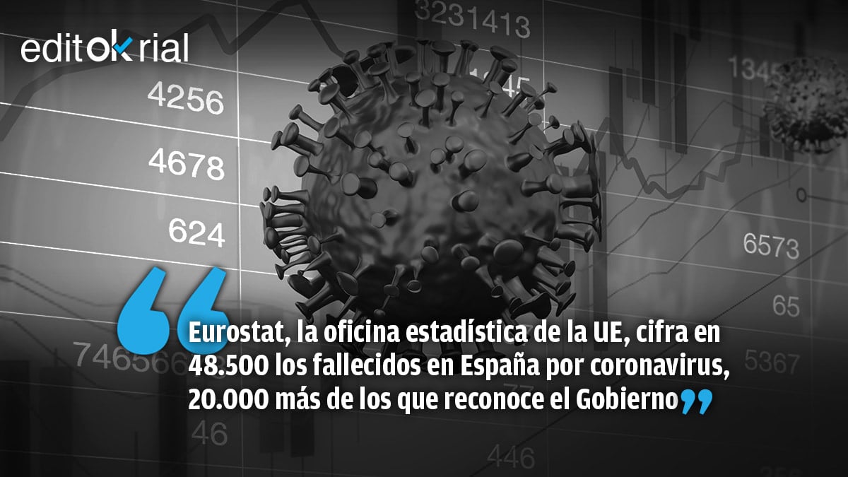 Eurostat, la Oficina Europea de Estadística que surte de datos a la Comisión Europea, ha colocado a España al frente de las naciones cuyas estadísticas oficiales en relación al número de fallecidos por el Covid se alejan más de la cruda realidad. O sea, que la UE apunta a que lo que dice el Ministerio de Sanidad se queda corto, pues faltan alrededor de 20.000 muertos. Según Eurostat, las víctimas mortales son 48.500, mientras que el Departamento de Salvador Illa solo reconoce 28.441. De este modo, España ostenta el tristísimo récord de muertos a causa de la pandemia en la UE, por delante de Italia con 44.900, Francia con 27.800, Alemania con 11.300, Holanda con 9.500 y Bélgica con 8.850.