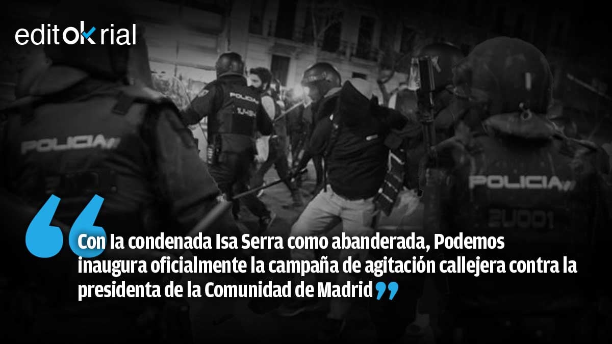 Resulta evidente que la formación morada está buscando un estallido social en Madrid y los conatos de violencia vividos ayer pretenden ser el preludio de un otoño caliente. Estamos ante una estrategia perfectamente trazada: el PSOE decidió borrarse de las concentraciones de protesta después de la reunión de Pedro Sánchez con la presidenta madrileña en la Puerta del Sol. Pura impostura, porque Podemos le hace el trabajo sucio al jefe del Ejecutivo y calienta las calles.
