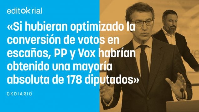 En Albacete a Vox le faltaron 1.200 votos para ganar el último escaño que se disputaba con el PSOE y al PP le sobraron 12.000; en Sevilla Vox habría logrado conservar sus dos escaños de haber tenido 7.000 votos para superar a Sumar y a los populares le sobraron 55.000; en Baleares Vox no ha podido conservar los dos escaños que conquistó en 2019. Le faltaron 25.000 votos para quitarle al PSOE su último diputado, pero el PP no rentabilizó un sobrante de 30.000 papeletas. Estos son los ejemplos más sangrantes: no fue por falta de votos, sino por la distribución de los mismos. Y el vencedor: Pedro Sánchez.