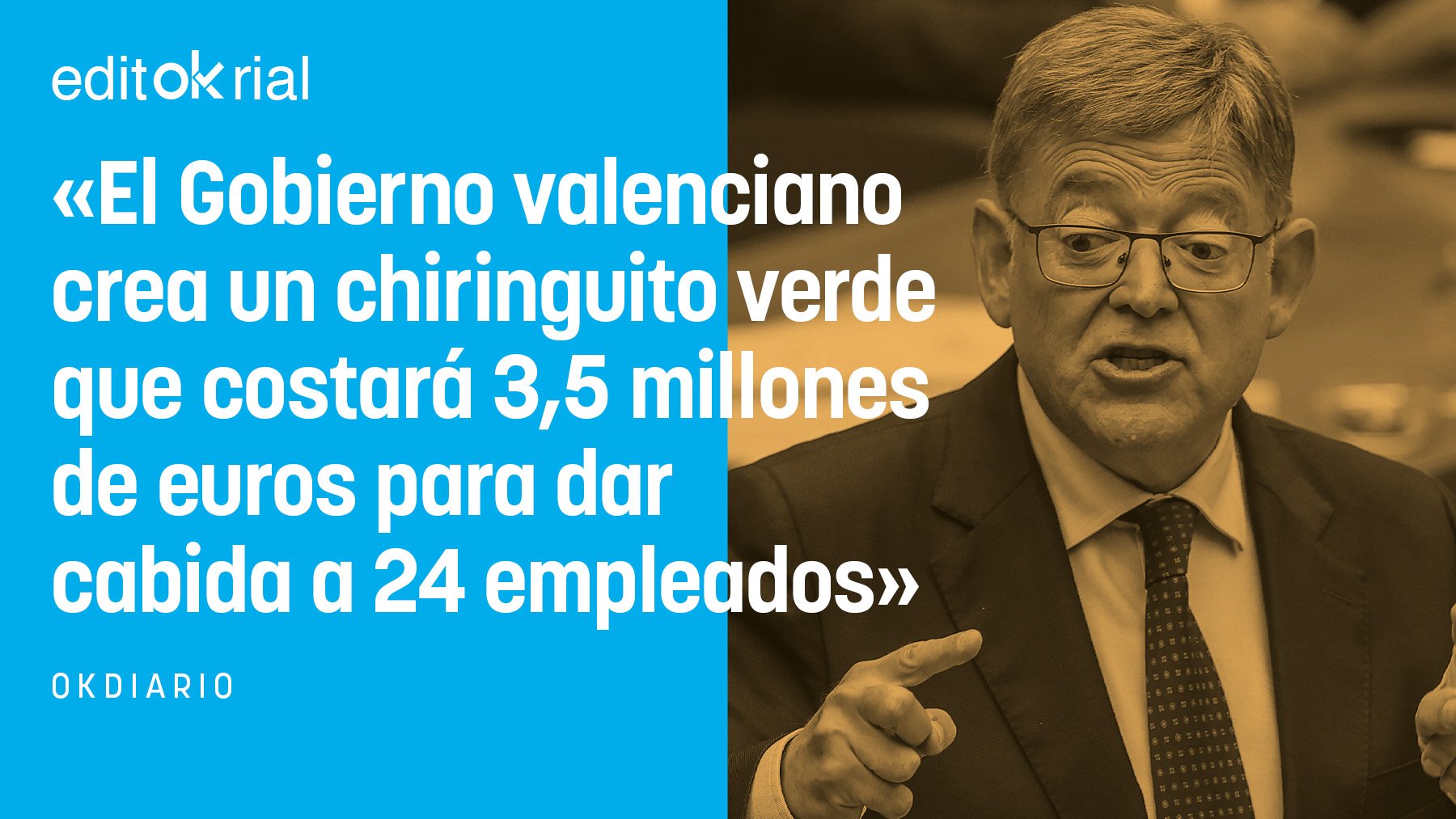 El Gobierno valenciano del socialista Ximo Puig tiene una dirección general encargada del cambio climático, pero como el asunto ecologista es bandera de la izquierda han decidido crear la Agencia del Cambio Climático, un chiringuito de nuevo cuño con un presupuesto de 3,5 millones de euros y que sólo en personal se gastará este año 881.000 euros en salarios. A esta gente lo del medio ambiente le pone cantidad, aunque luego -dime de qué presumes y te diré de qué careces- cada vez que Pedro Sánchez coge el Falcon contamina más que una siderúrgica. Se da la circunstancia de que el gasto del sector público valenciano casi se ha duplicado desde que el socialista Ximo Puig es presidente, pues ha pasado de los 2.038 millones de euros en el último año de gobierno del PP (2015) a los más de 3.700 millones actuales, que ya marcaron un máximo histórico en el pasado 2022. El incremento anual ha superado la media de los 239 millones de euros.