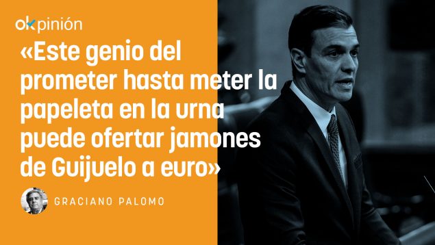 El zoco Sánchez tengo para mí que no ha terminado de lucir en su tenderete el resto de las promesas que hará públicas de aquí al día de reflexión. Este genio del prometer hasta meter la papeleta en la urna puede ofertar jamones de Guijuelo a euro y caviar de beluga a céntimo. En ese juego no tiene par.