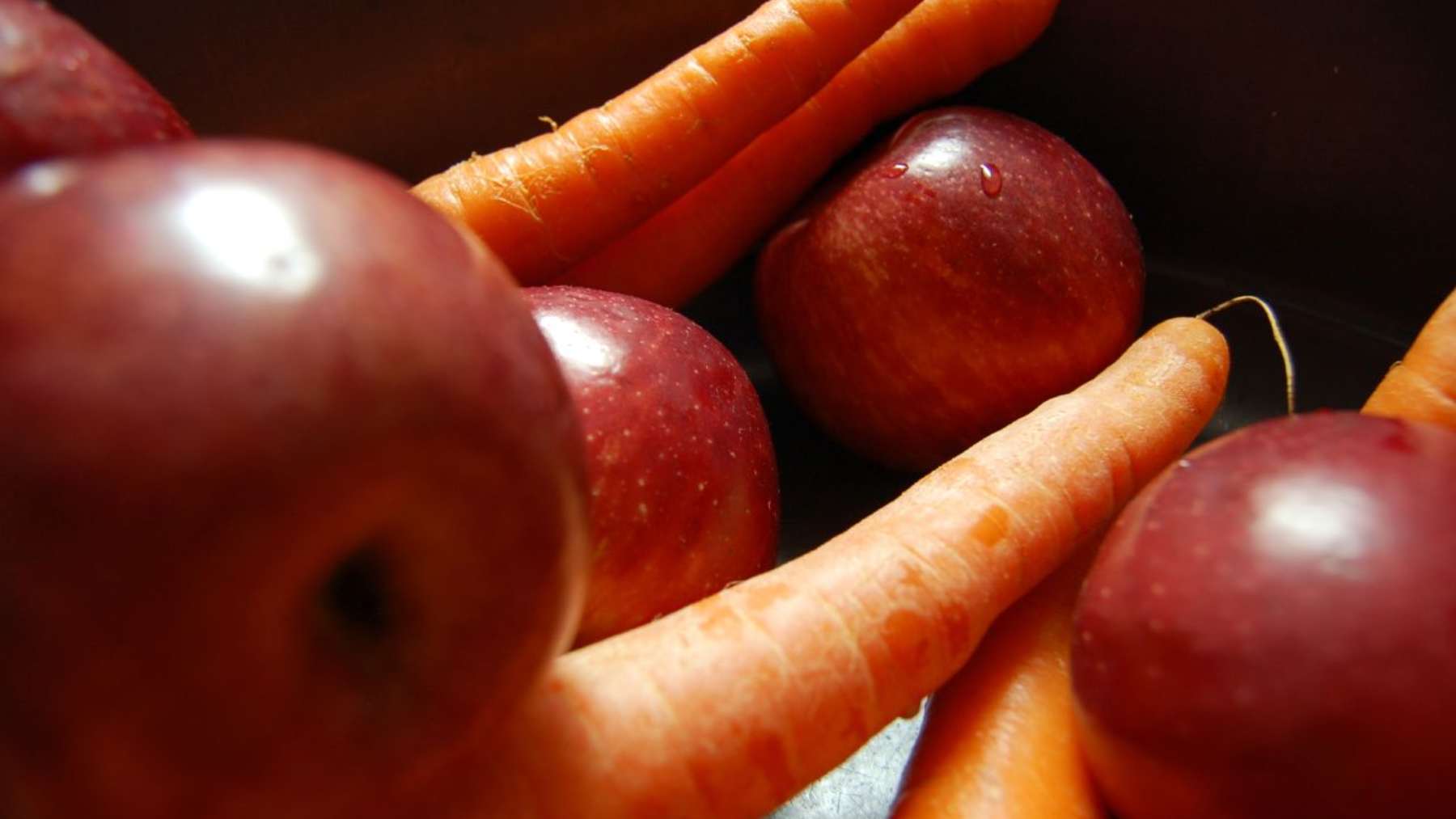 - Precalienta el horno a 180°C. Saca la mantequilla y la mantequilla de almendras del refrigerador para que se ablanden, lava, pela, limpia y ralla las manzanas y las zanahorias.