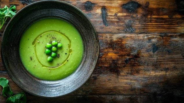 Crema de guisantes Thermomix receta fácil y suave ideal para una comida ligera y saludable.