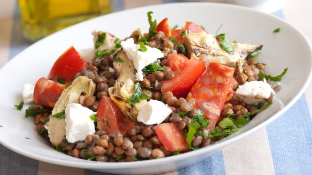 Cómo preparar ensalada templada de lentejas con queso: