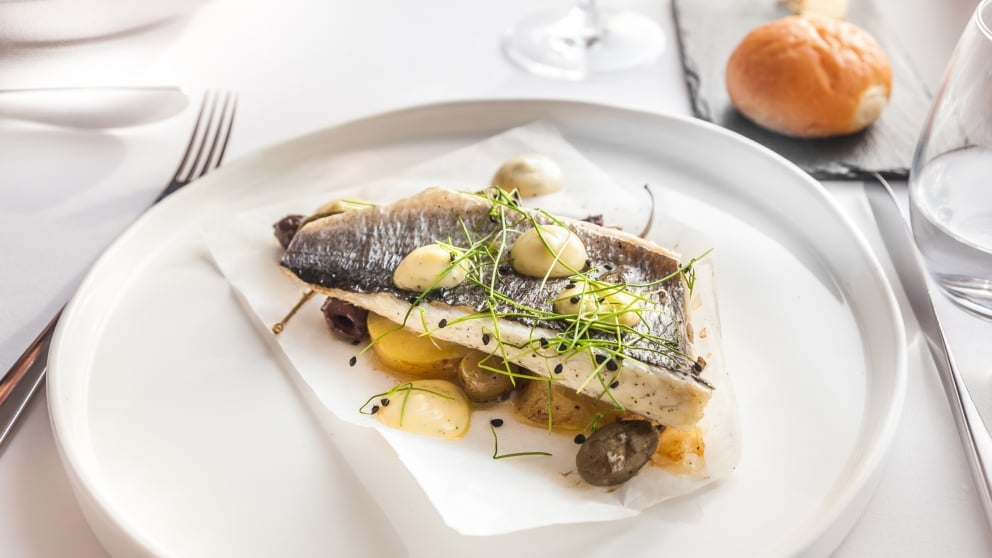 Cómo preparar lubina al limón sobre cama de cebollitas francesas: