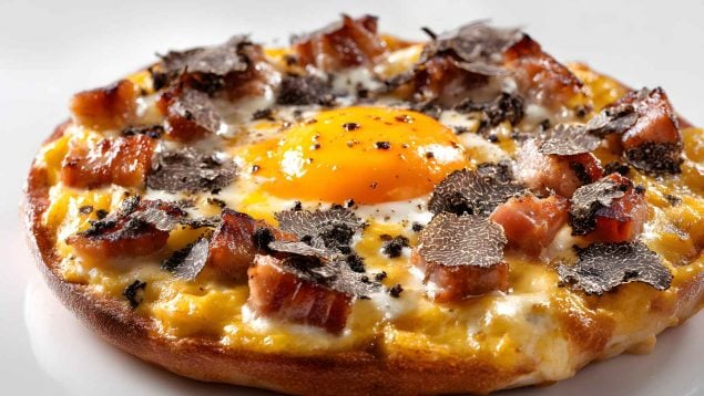 La combinación es sencilla pero potente: una base crujiente, queso fundido, un huevo con la yema todavía cremosa y el perfume inconfundible de la trufa. No necesita muchos ingredientes. De hecho, cuanto menos la recargues, mejor funciona.