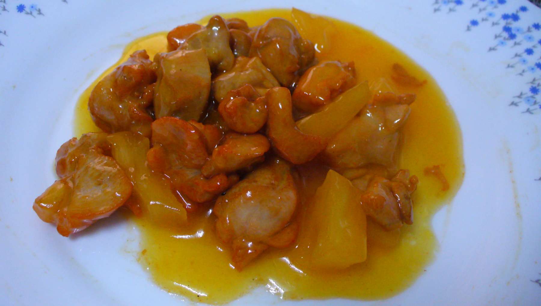 - Colocar las chuletas de cerdo en un plato y cubrirlas con la salsa de piña y encurtidos. Servir caliente.