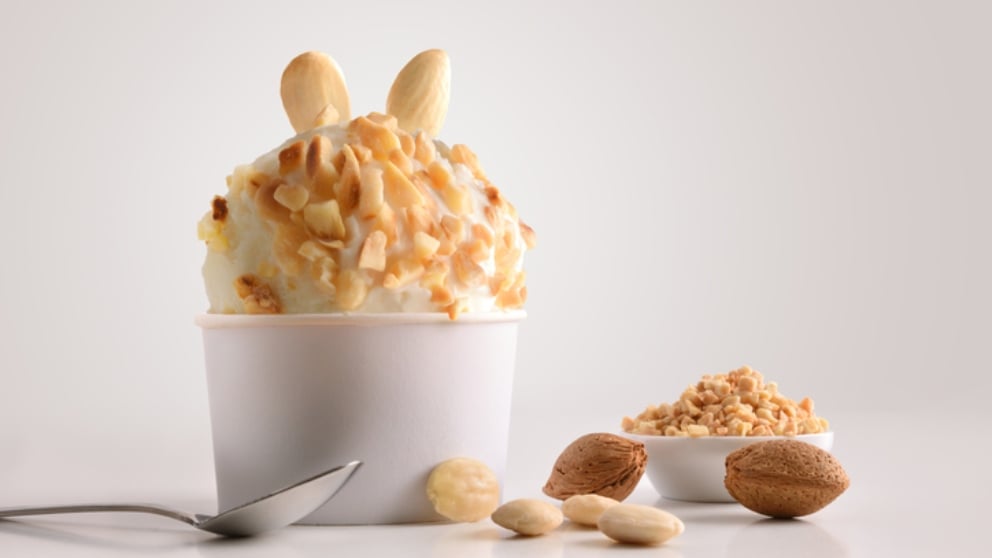 - Dejamos que cuaje en la nevera y lo servimos muy frío. Por encima pondremos la almendra tipo crocanti, cortada en trocitos. Coronamos con el caramelo líquido que ayudará a darle más color, podemos ponerle miel, chocolate o nata. Tendremos listo un postre impresionante y muy fácil de cocinar.