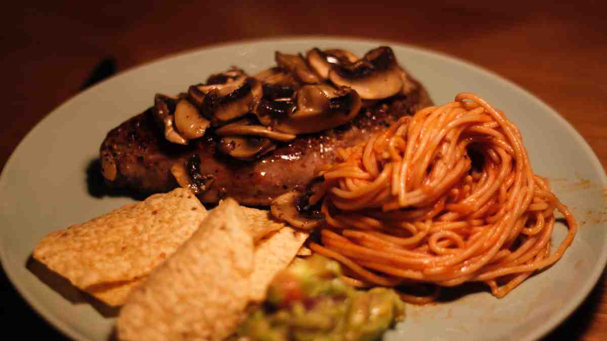 Cómo preparar el entrecot de aguja de cerdo con salsa de champiñones: