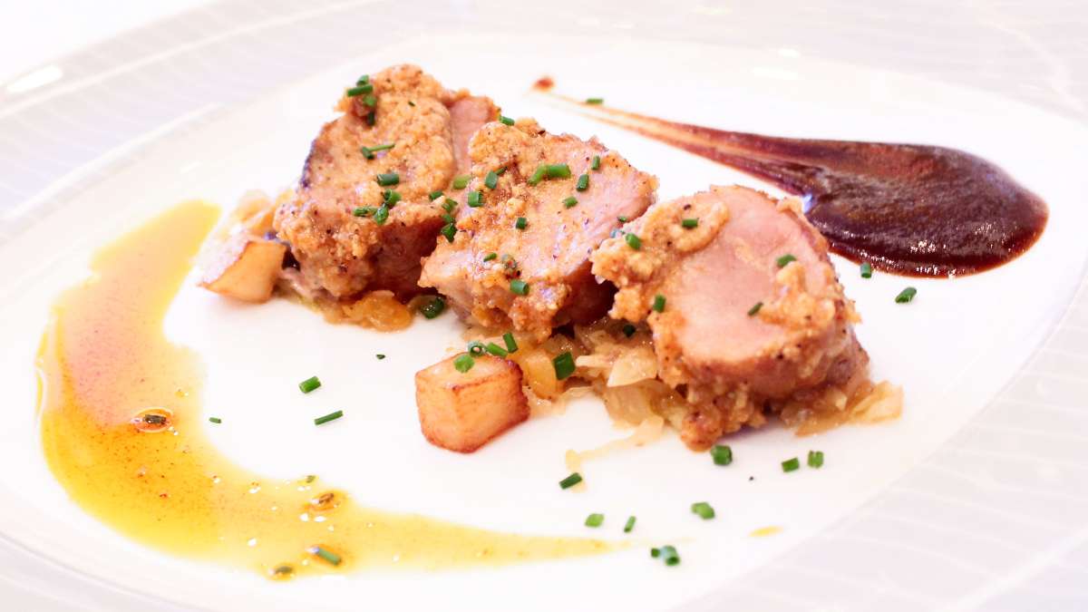 El lomo de cerdo con higos y melocotones permite recrear las salsas del pasado. Durante el siglo XVI era muy normal servir platos salados con salsa proveniente de fruta. Para ello, se exprimían los frutos o se cortaban con el objetivo de que los platos fueran un poco más húmedos. De hecho, la palabra “salsa” proviene de la práctica de incorporar ese tipo de alimento natural a las comidas cotidianas. Esto fue una tendencia que tuvo mucha vigencia en medio de las expediciones españolas al continente americano. Por su parte, el lomo de cerdo es un corte bastante suculento, suave y apreciado en la gastronomía española. Se suele utilizar mucho en bocadillos y preparado al adobo. Se trata de un corte bastante versátil que puede prepararse de muchas formas distintas. La única dificultad de prepararlo está en establecer los puntos justos de cocción para evitar que se seque demasiado.