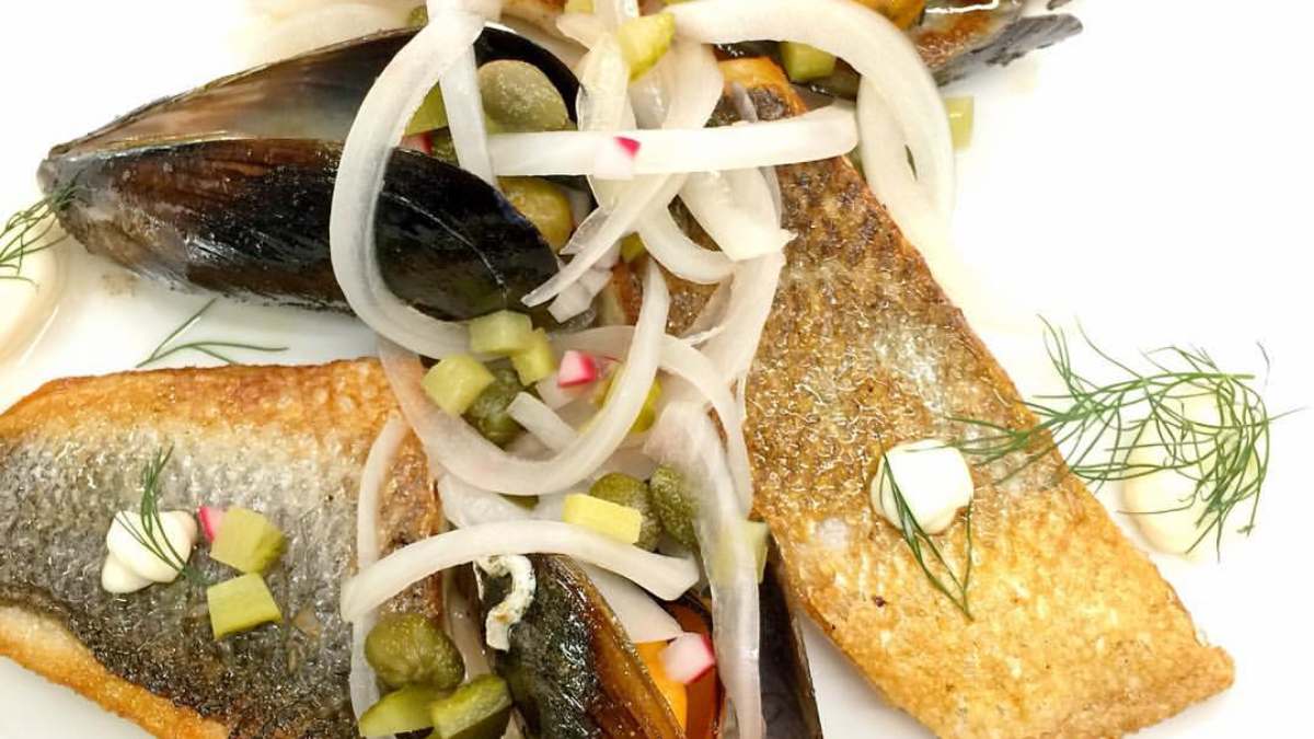 Receta de Lubina al vapor con vinagreta de encurtidos