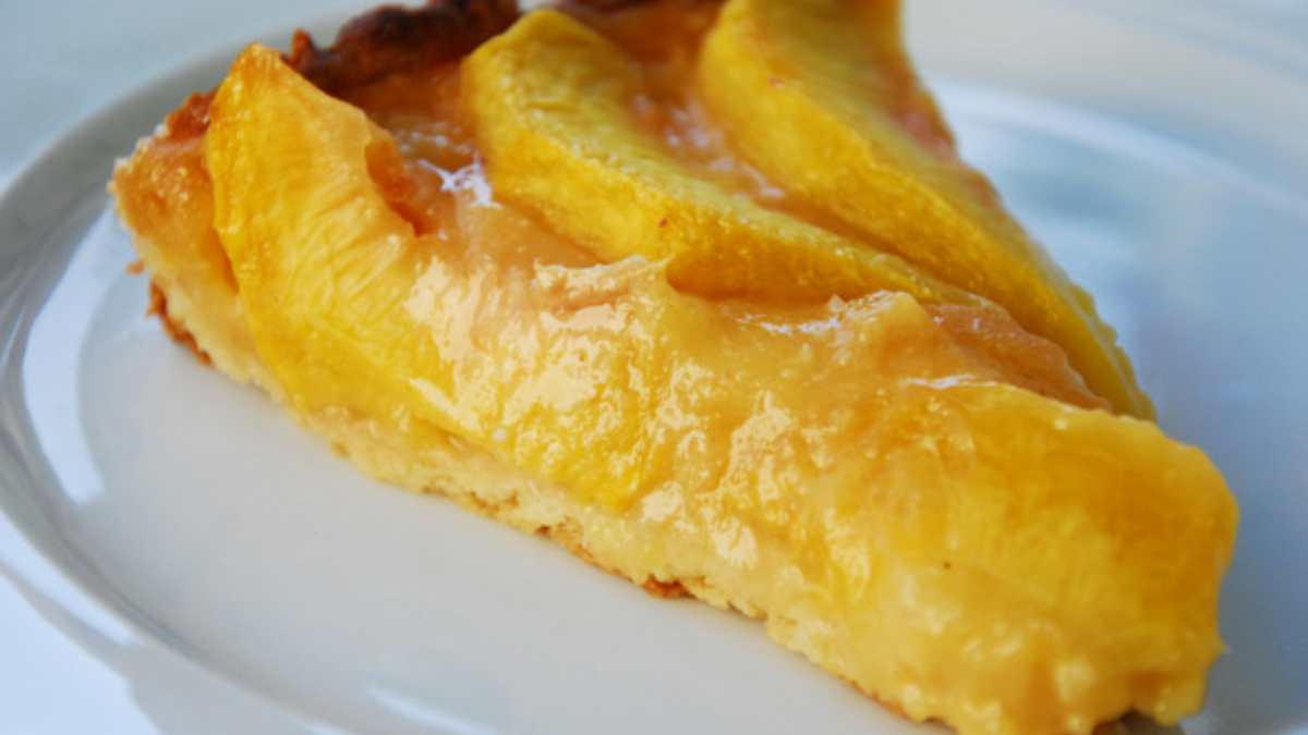 Tarta de melocotón en almíbar con frutos rojos, receta de un postre delicioso