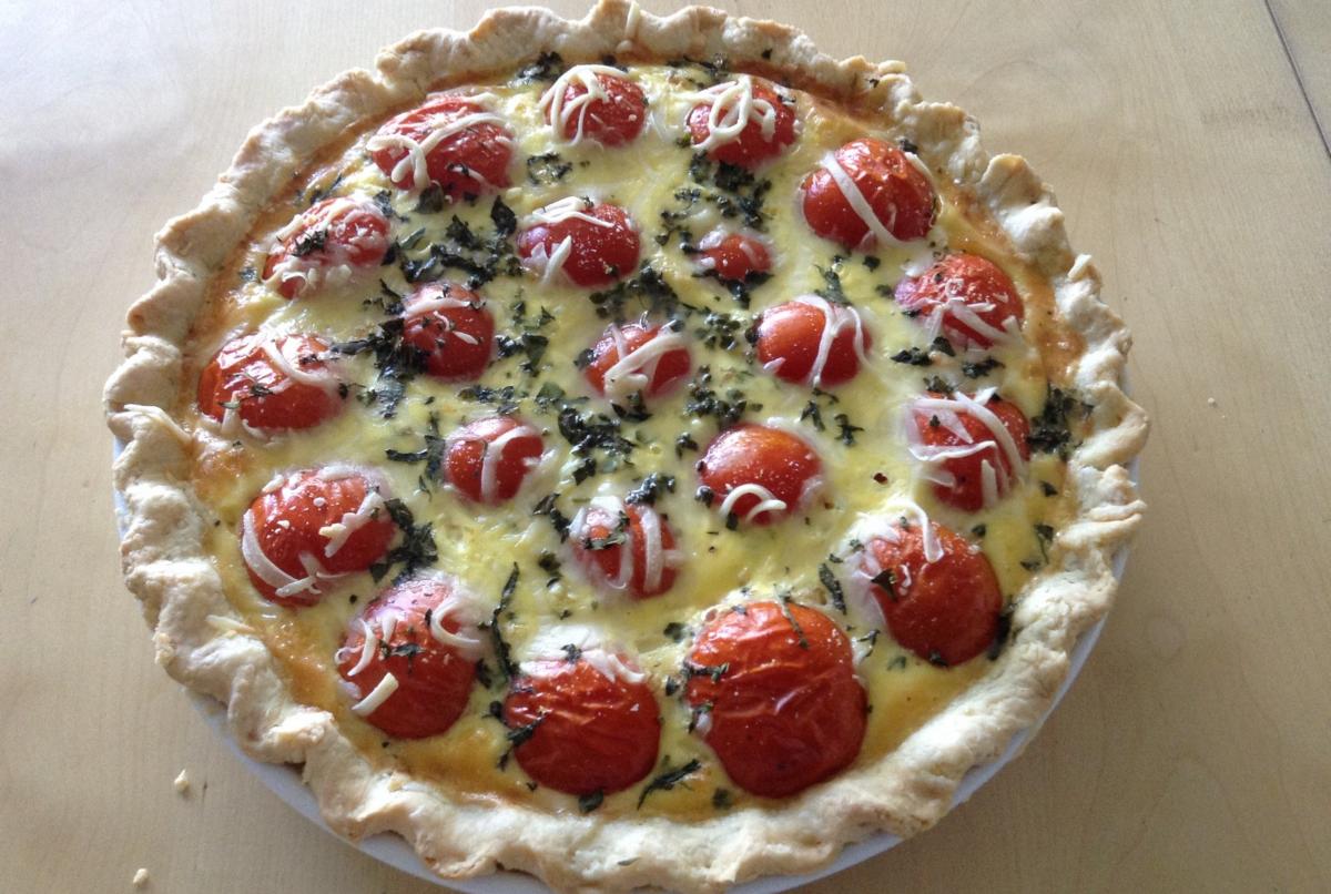 Receta de Tarta de tomates cherry, pesto y pollo salteado