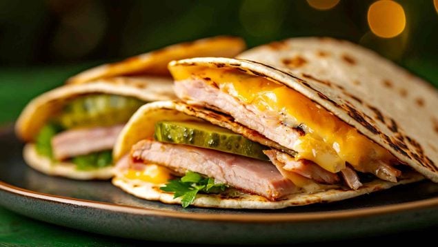 A primera vista parece otro wrap más. Pero no, la gracia está en el corte. Se hace un pequeño corte desde el centro hasta uno de los bordes. Eso permite doblar la tortilla en secciones, como si fuera un abanico.