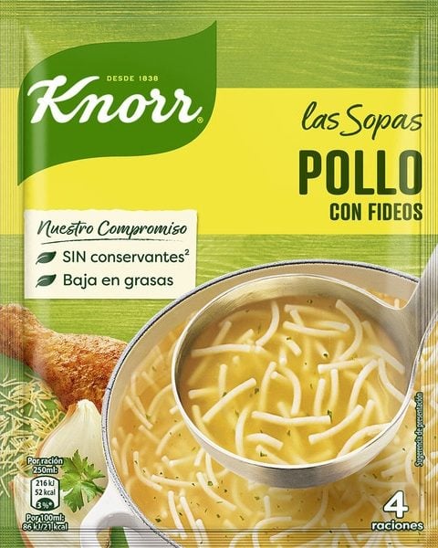 El producto es la sopa de pollo con fideos de la reconocida marca Knorr