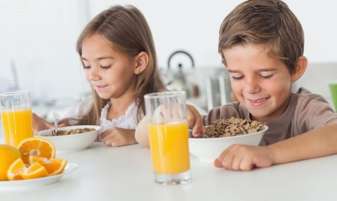 Con estos consejos podrás ofrecerles a tus hijos un desayuno completo y equilibrado, que les mantendrá con energías hasta la hora de la comida. En realidad habría que hacer una comida a media mañana, ya sea con una pieza de fruta o un puñado de frutos secos. De esta manera no llegarían con tanto apetito a la hora del almuerzo. Lo que está claro es que se debe apostar por alimentos naturales y evitar en la medida de lo posible los zumos envasado y la bollería industrial.