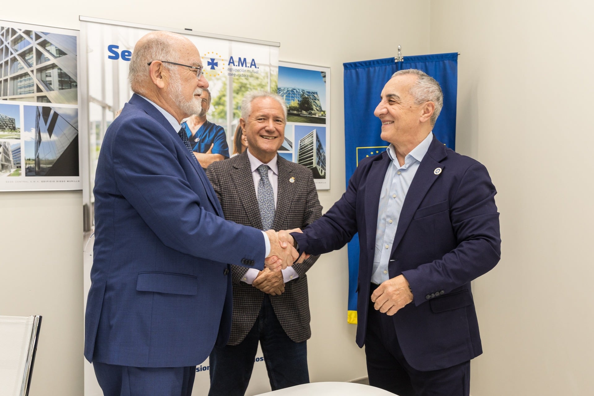La firma del acuerdo tuvo lugar el pasado viernes en la Delegación de A.M.A. en Valencia, en un encuentro muy especial que reunió a D. Jaime Giner, presidente de A.M.A. Vida, Juan José Tirado, presidente de CECOVA y D. Francisco Vicente Mulet Falcó, consejero de A.M.A.