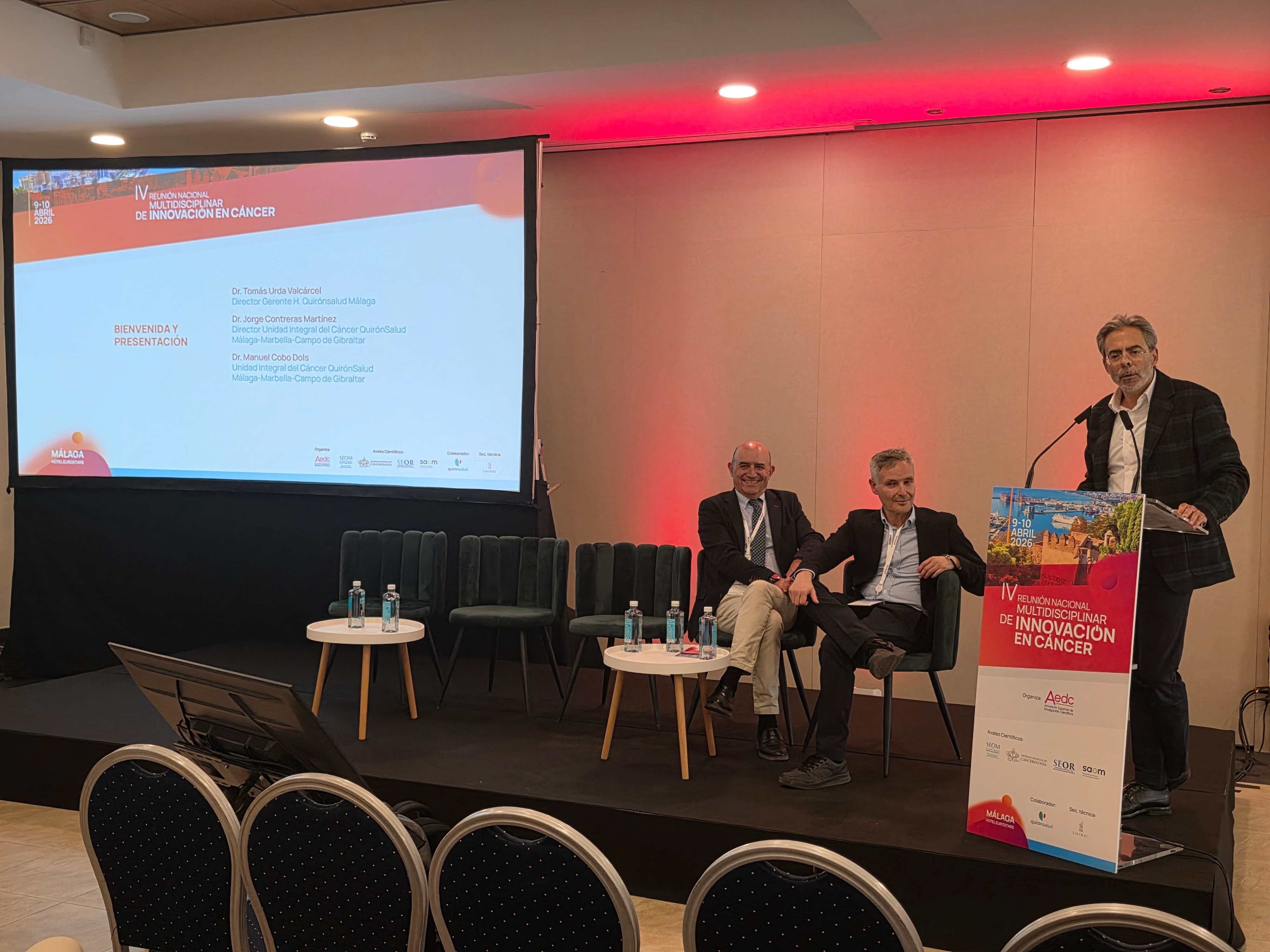 El doctor Tomás Urda, director gerente del Hospital Quirónsalud Málaga, ha sido el encargado de inaugurar la Reunión junto a los organizadores de la misma, los doctores Manuel Cobo y Jorge Contreras, destacando este último la satisfacción con esta nueva edición, marcada por un incremento en la participación y por un programa científico que refleja la evolución constante en materia oncológica.