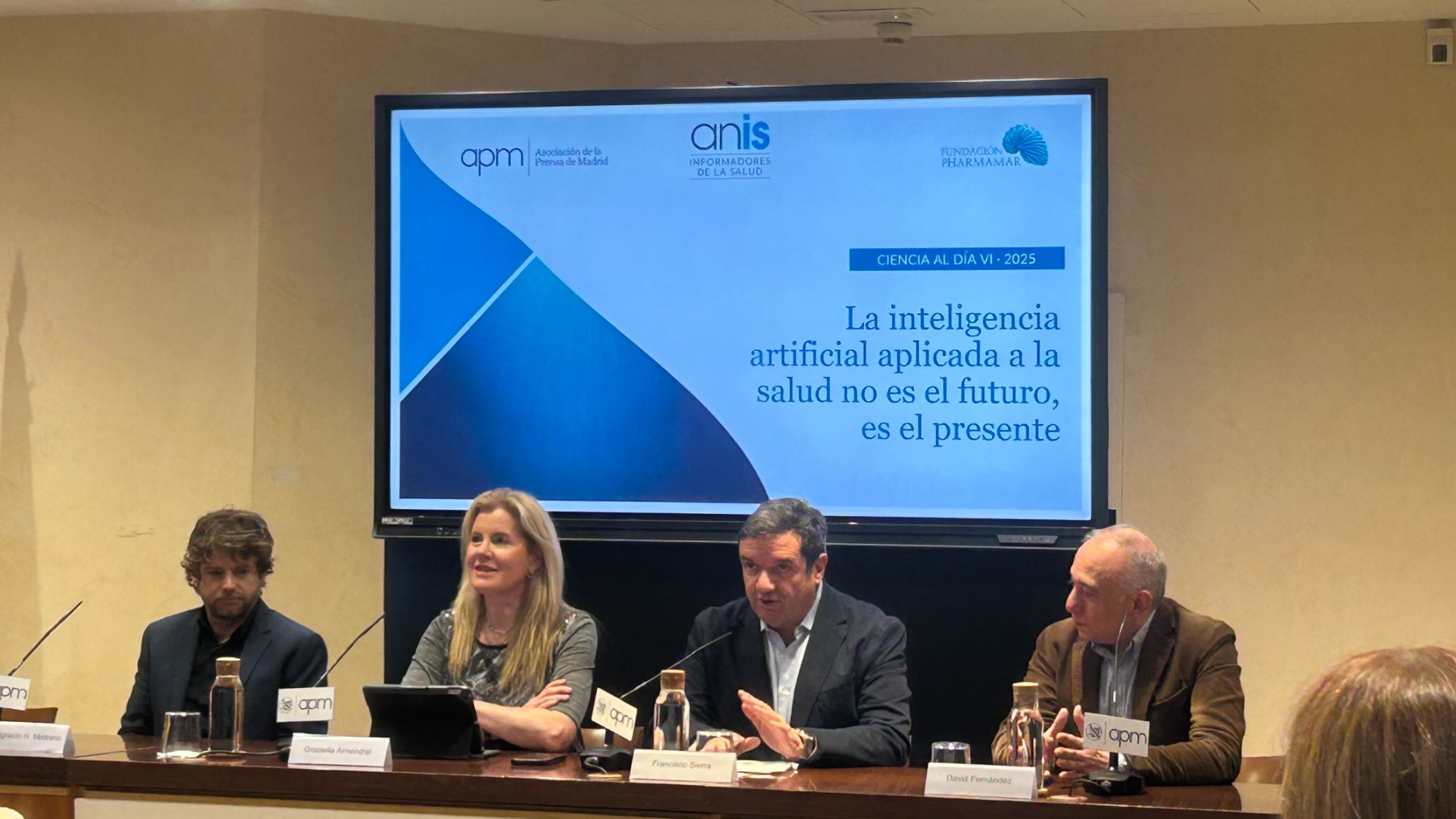 El doctor Ignacio Hernández Mendrano ha participado en una jornada de formación para periodistas bajo el título ‘La Inteligencia artificial aplicada salud no es el futuro, es el presente’, organizada por la Asociación de la Prensa de Madrid (APM), la Asociación Nacional de Informadores de la Salud (ANIS) y la Fundación PharmaMar, donde también han participado el vicesecretario general de la APM y presidente de la Comisión de Formación, Empleo y Tecnología de la APM, Francisco Sierra; el director de Operaciones de la Fundación PharmaMar, David Fernández, y la presidenta de ANIS, Graziella Almendral.