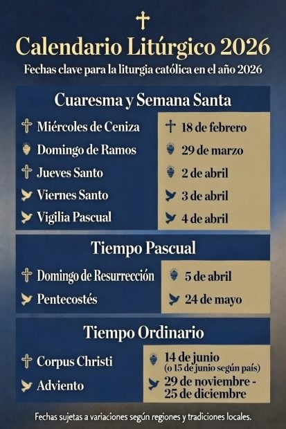 Calendario católico 2026: fechas clave de Cuaresma, Semana Santa, Pentecostés y Navidad