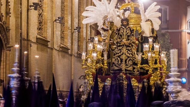 Málaga empieza antes que ninguna. A las 09:50 ya está en la calle Pollinica, que abre el Domingo de Ramos desde su Casa Hermandad. Alcanzará la Catedral en torno a las 14:10 y regresará a las 16:15, dejando una mañana completamente ocupada en el centro.