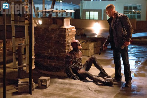 Os comtábamos como al final del tráiler, se puede apreciar una figura apuntando a un taxista con un francotirador que será nada más y nada menos que The Punisher, el cual se enfrentará al superhéroe ciego.