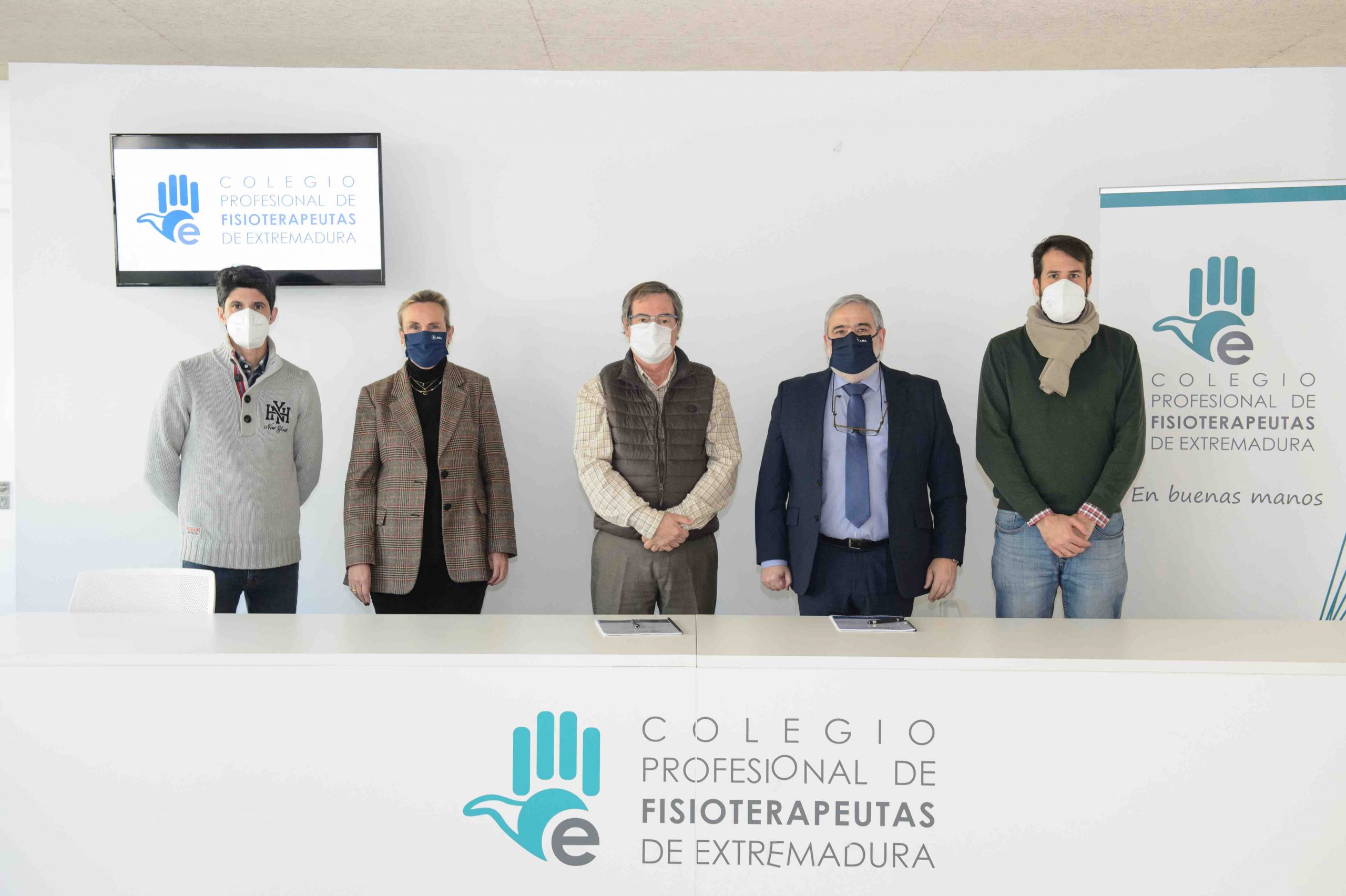 La suscripción de la póliza de AMA Vida con el Colegio de Fisioterapeutas de Extremadura se firmó en la misma fecha en la sede del Colegio en Badajoz, con la rúbrica de su presidente, Juan José Jiménez, asistieron también el secretario del Colegio Francisco Javier Méndez, el vicesecretario Luis Espejo y la delegada de A.M.A. en Badajoz Aurora Sanguino.
