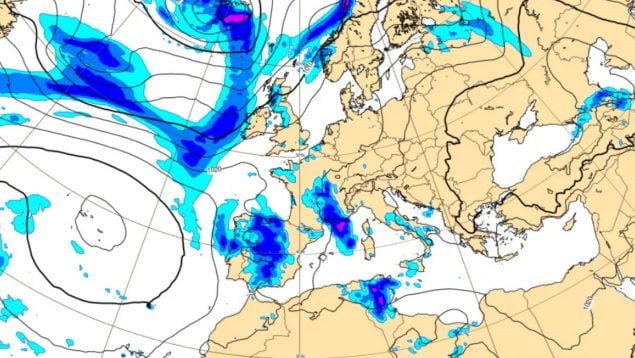 Siguiendo con la misma explicación: «En el inicio de la próxima semana, la nueva dana se posicionará sobre la mitad oeste peninsular. En niveles medios de la atmósfera habrá temperaturas muy bajas en altura, cercanas a los -30 °C, de forma que se incrementará notablemente la inestabilidad y favorecerá el desarrollo de precipitaciones en amplias zonas del país. La posición de este núcleo frío será clave para entender la distribución de las lluvias y de las nevadas. Las regiones situadas bajo su influencia directa registrarán chubascos más frecuentes e intensos. Aún hay discrepancias entre los modelos. Mientras el modelo europeo deja la dana más al oeste y al sur, reduciendo la precipitación, el norteamericano mantiene la posición idónea para dejar nevadas copiosas. El frío en capas bajas sí parece asegurado, provocando un descenso paulatino de la cota de nieve entre el lunes y el miércoles».