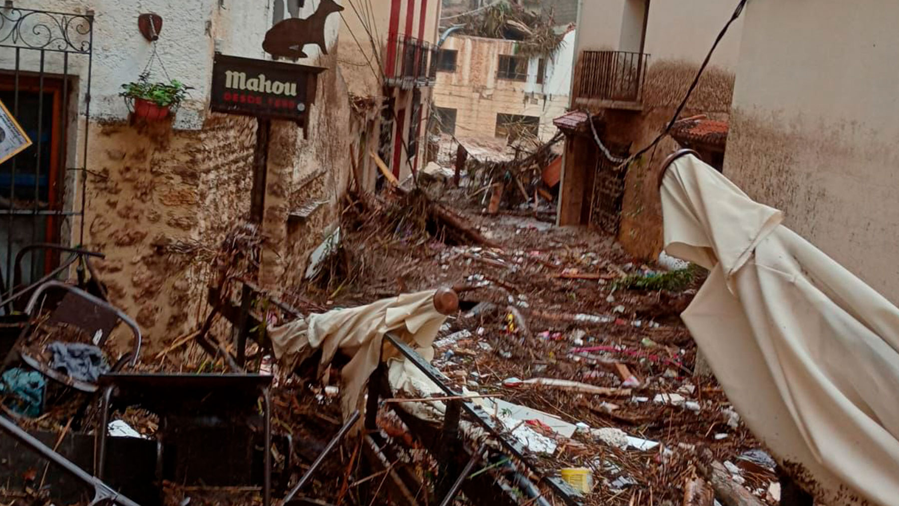 El desastre ha sido causado por el desbordamiento del arroyo que atraviesa este pueblo, cuyas imágenes son impactantes y muestran la brutalidad de lo ocurrido.