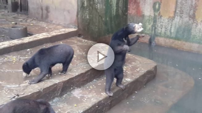 Lamentable el estado en el que se encontraban estos osos malayos de un zoo de Indonesia que suplicaban a los visitantes que les dieran comida. Los animales llegan a ponerse sobre dos patas intentando llamar la atención de los visitantes. El aspecto famélico de cada uno de ellos es estremecedor, un atentado contra los derechos de los animales.