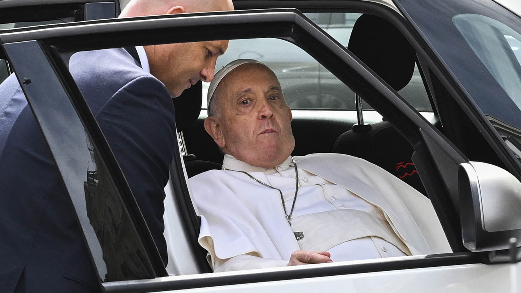 El Papa ha salido en coche esta mañana del hospital de Roma Gemelli tras cuatro días ingresado por una bronquitis. Al bajarse del vehículo ha saludado a un grupo de fieles que estaban esperándolo y ante ellos ha exclamado: «Todavía sigo vivo».