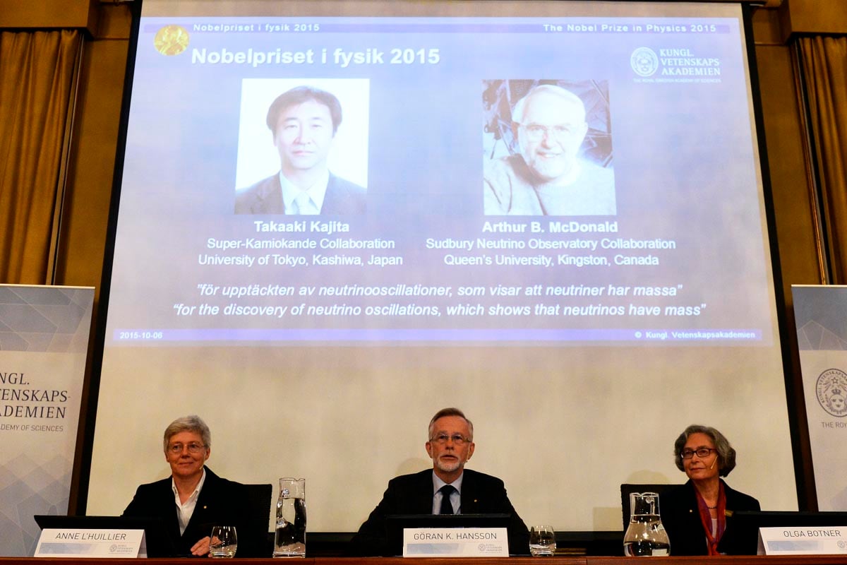 Un japonés, Takaaki Kajita, y un canadiense, Arthur B. McDonald, obtuvieron el martes el premio Nobel de Física por sus «históricos descubrimientos» sobre el neutrino, una partícula cósmica fundamental para comprender el universo y su origen.