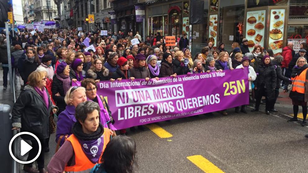 Convocada por el Foro de Madrid contra la Violencia a las Mujeres, esta marcha es el acto central en la capital con motivo del Día Internacional de la Eliminación de la Violencia contra la Mujer, que se une a las concentraciones y manifestaciones que se celebran hoy por toda la geografía española para exigir el fin de la violencia machista y del rearme de la violencia patriarcal.