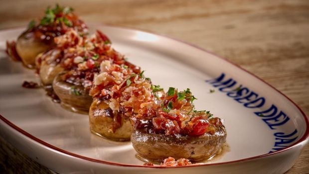 Platos a los que se suman propuestas más actuales como las costillas confitadas a baja temperatura con salsa de frutos secos, el secreto ibérico con chimichurri, las alcachofas con Jamón Ibérico o los ricos champiñones con jamón, que la casa presenta ahora rellenos con una deliciosa duxelle a la que se agrega picadillo de jamón ibérico.