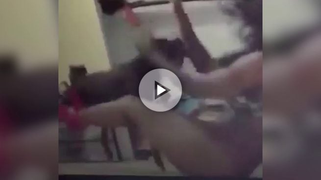 Esta joven es brutalmente atacada por su perro al bailar twerking prácticamente desnuda. El perro se pone nervioso con los movimientos de la chica que, además, no deja de bailar a pesar de todo.