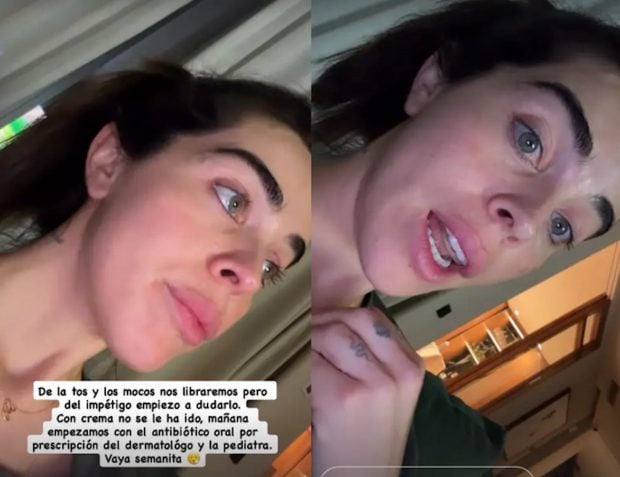 La situación comenzó con un episodio de malestar general en las niñas, relacionado principalmente con una afección respiratoria que les provocaba tos y acumulación de mucosidad. Como consecuencia, el descanso nocturno se volvió más difícil para toda la familia, algo habitual cuando los niños atraviesan este tipo de procesos. «De la tos y los mocos nos libraremos pero del impétigo empiezo a dudarlo», les contó a sus seguidores.