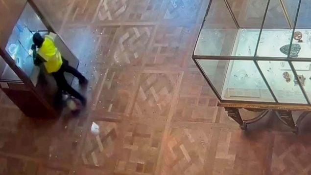 Los ladrones del robo del Louvre se dirigen directamente hacia las vitrinas que albergan las joyas de la corona francesa. Los hombres, armados con amoladoras angulares, cortaron y destruyeron dos vitrinas en cuestión de minutos. El primero se apoderó de la diadema de la emperatriz Eugenia, mientras que el segundo arrancó de su vitrina fragmentos de un ajuar perteneciente a las reinas María Amelia y Hortensia.