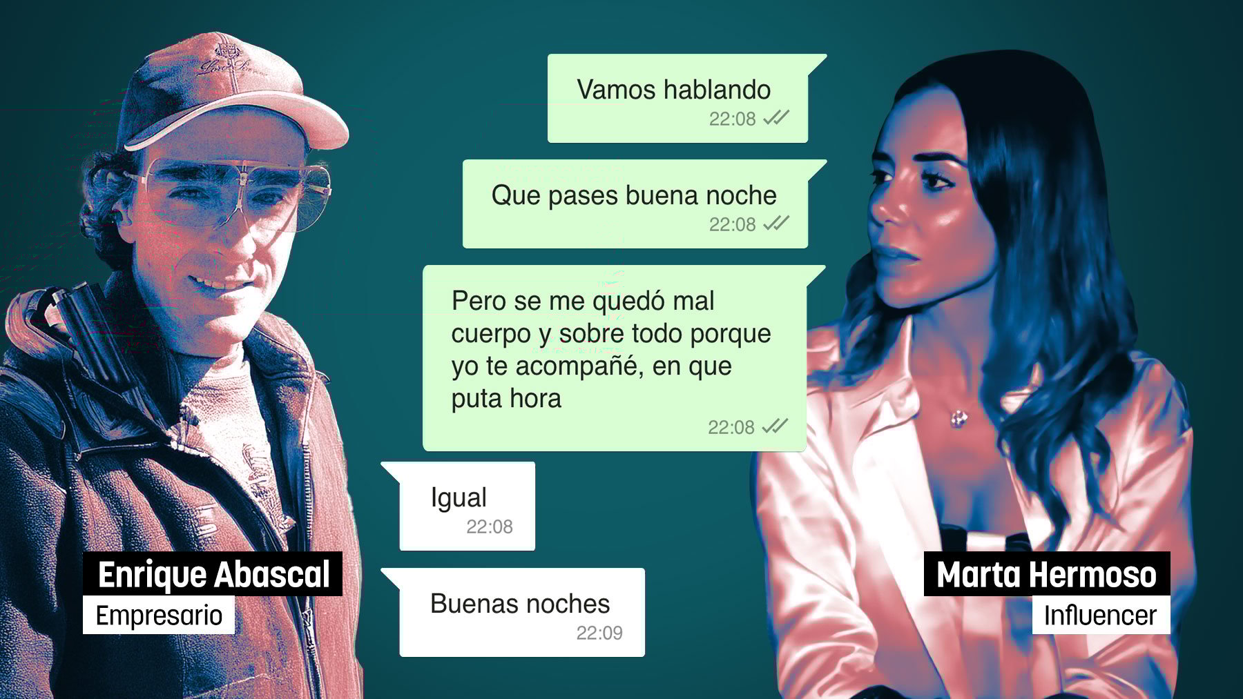 La influencer Marta Hermoso se lamentaba de haber quedado en Madrid con el empresario mexicano Enrique Abascal, víctima de un robo de 400.000 euros en su habitación en el Hotel Wellington: «En qué puta hora te acompañe», decía Hermoso en los mensajes de WhatsApp. La influencer fue detenida como sospechosa de proporcionar información para el robo.