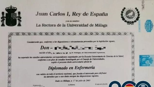 Tras las consultas correspondientes, se confirmó que el sujeto carecía de cualquier formación universitaria como enfermero y utilizaba un título falso. Tampoco constan registros de este en los Colegios de Enfermería de Málaga y Almería, provincias donde estuvo trabajando en el sector. Para conseguir trabajo presentaba el falso título universitario, certificados falsos de colegiación a nombre de otra enfermera ajena a sus tejemanejes.