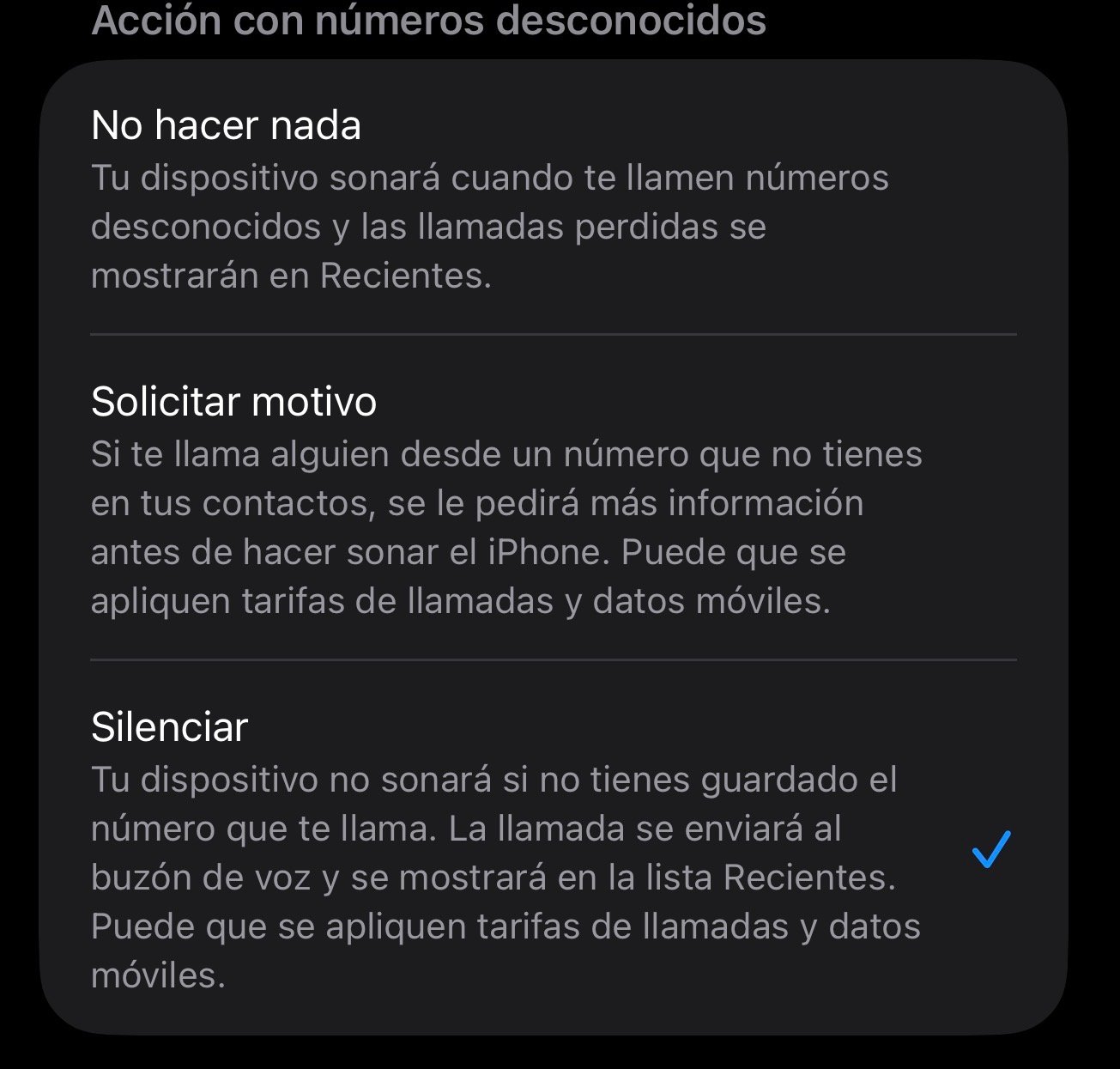 En Ajustes > Teléfono > Silenciar desconocidos puedes evitar llamadas comerciales o spam. El iPhone solo hará sonar las llamadas de contactos guardados o números con los que hayas interactuado antes.