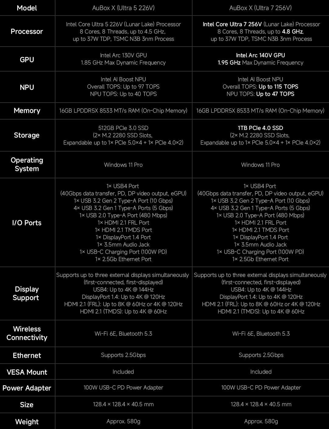 - AuBox X (Ultra 5 226V): $699