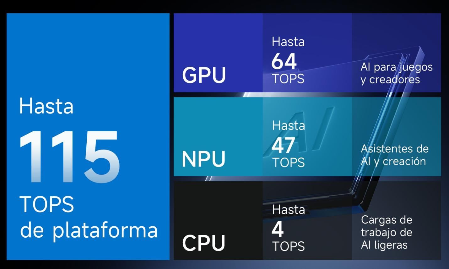Hasta 115 TOPS de rendimiento total de AI