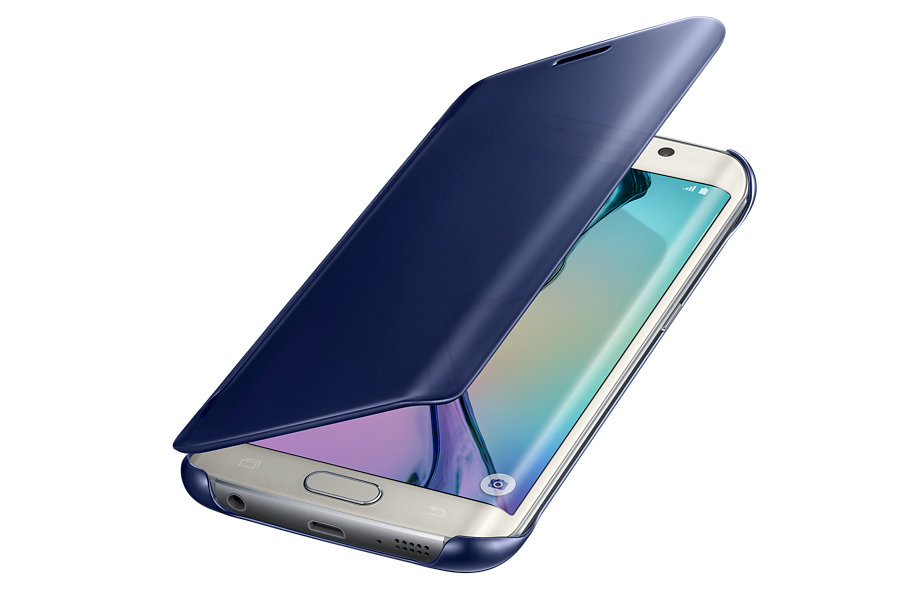 Clear View Cover: la nueva Clear View Cover le dará un toque de elegancia a tu Galaxy S6 edge+, además de aportar protección y funcionalidad. Con nuevos materiales anti scratch y anti huellas, esta funda permite al usuario acceder rápidamente a notificaciones como llamadas o música sin necesidad de abrir la tapa. Disponible en dorado y negro azulado.