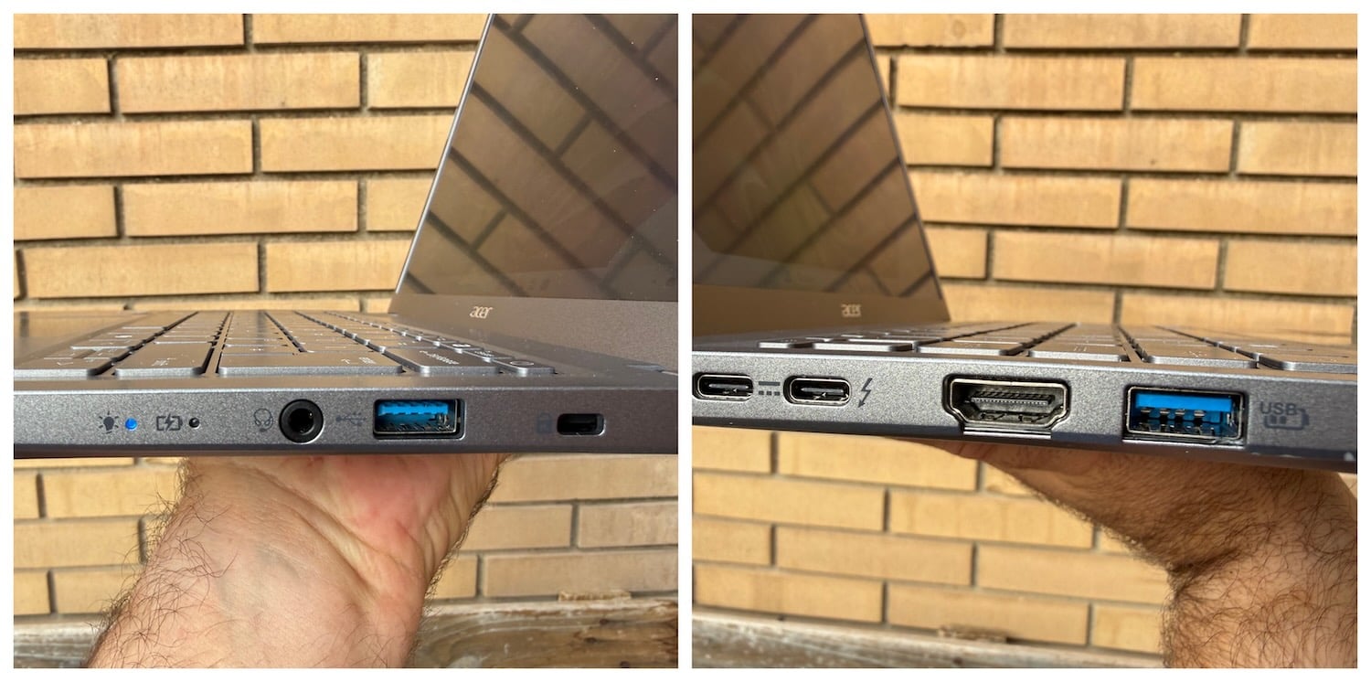 Algo que me ha gustado del Aspire 14 AI es que no se queda corto en conectividad, algo que cada vez ocurre más en muchos portátiles finos.En uno de los laterales encontramos dos puertos USB-C compatibles con Thunderbolt, que sirven tanto para cargar el equipo como para conectar monitores o accesorios de alta velocidad.