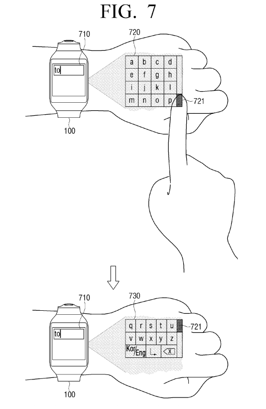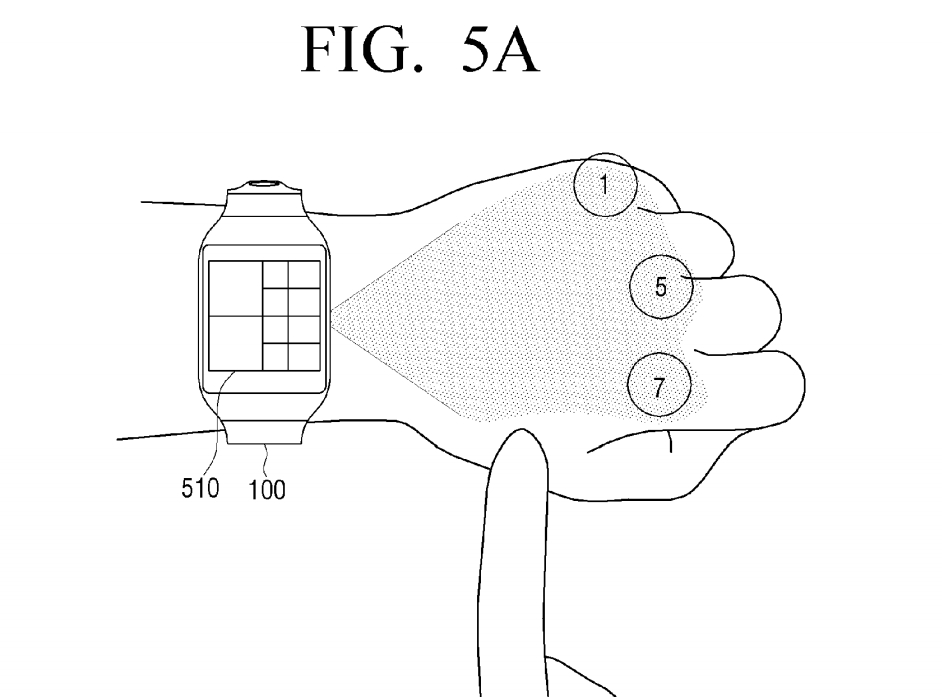 Si eres usuario de un reloj inteligente o al menos has probado uno, sabrás que uno de los grandes problemas que tienen es el tamaño de pantalla y las dificultades a la hora de interactuar con la pantalla táctil, precisamente por sus reducidas dimensiones. Como sabrás, fabricantes como Apple o Samsung han ideado sistemas como la corona o el bisel giratorio que permiten navegar por listas o seleccionar opciones sin usar la pantalla táctil y evitar cubrir la imagen. Pues bien, aunque quizá muchos ya han decidido que los relojes inteligentes no tienen un futuro muy brillante (al menos un futuro muy inmediato), compañías como Samsung siguen buscando formas de hacerlos más útiles y fáciles de usar. Así, la última patente de la compañía coreana (que asegura tiene el mayor número de patentes en el terreno de wearables de toda la industria) muestra un curioso sistema que usará un haz para proyectar en tu muñeca una segunda pantalla que puede servir de interfaz para manejar distintas funciones, o teclear con más facilidad números y mensajes.